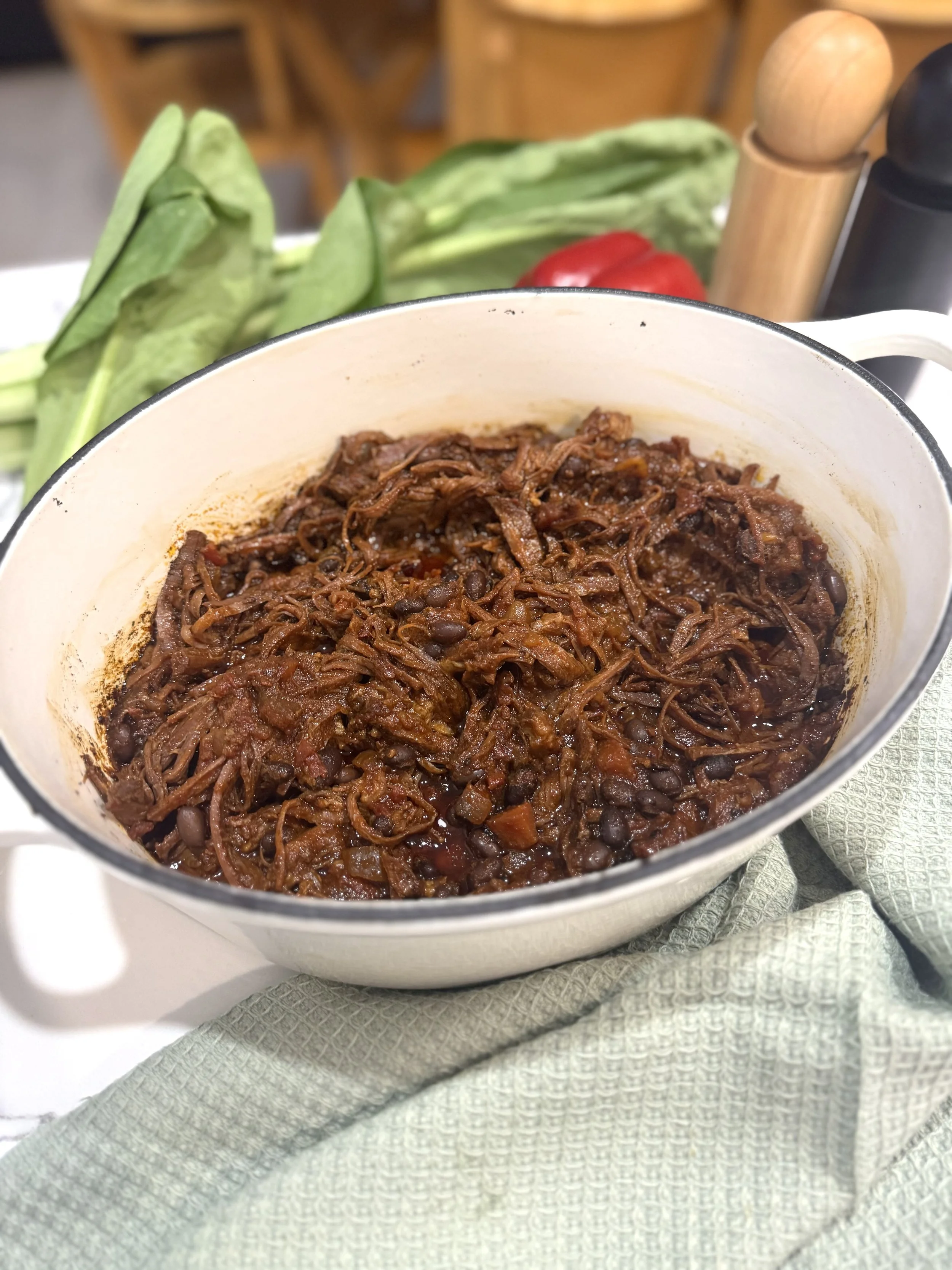 Transfer to oven with lid on and cook for 6 hours (or until falling apart).